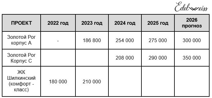 Рост стоимость квартир в жилых комплексах комфорт и бизнес-класса застройщика EDELWEISS: